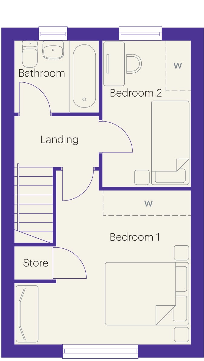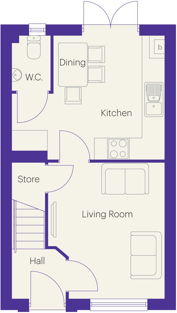 The Holly is a bright and airy home with an open-plan kitchen/diner to the rear featuring French doors which give a spacious feel and provide direct access to the garden. There is also a convenient WC in this area. A fantastic size lounge at the front of the home complements its spacious feel and provides the perfect spot to wind down after a long day. A store cupboard to provide the extra space a home needs for modern day living is situated beneath the staircase.